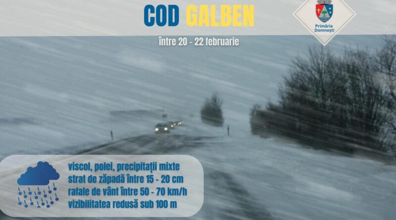 Autoritățile locale din Domnești au intervenit intens în zilele de 21 -23 februarie pentru a face față episodului de vreme severă anunțat de Administrația Națională de Meteorologie, care a emis cod galben de precipitații mixte, polei, viscol și ninsori.